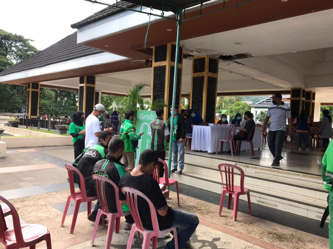 Referensimaluku.id.AMBON- Grab Ambon menggandeng Dinas Kesehatan Kota Ambon menggelar vaksinasi untuk memutus mata rantai penyebab virus korona (Covid-19) yang terus mengalami penurunan dan penaikan angka penyebaran dari waktu ke waktu. Kegiatan yang melibatkan mitra pengemudi Grab ini digelar di Tribun Lapangan Merdeka, Kota Ambon, Maluku, Jumat (21/5), diawali pukul 09. 00 waktu setempat hingga siang hari. Vaksinasi ini merupakan program rutin Diskes Ambon sejak 19 Mei hingga 31 Mei 2021. Vaksinasi ini diharapkan dapat membantu memutus mata rantai penyebaran Covid-19 di ibu kota Maluku.